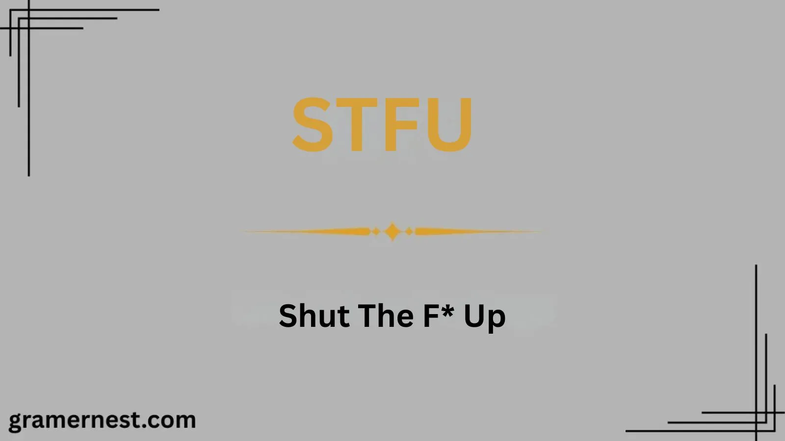 STFU is an acronym that stands for “Shut The F* Up.”** It is primarily used as a blunt, often rude way to tell someone to stop talking or to express frustration over what they are saying. While it is widely recognized in internet culture, it is considered informal, and in many cases, impolite.